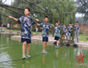 水上拓展 狹路相逢勇者勝:跨越天塹、獨(dú)木橋、水上七竅板、空中拔河賽、圓桶橋 |