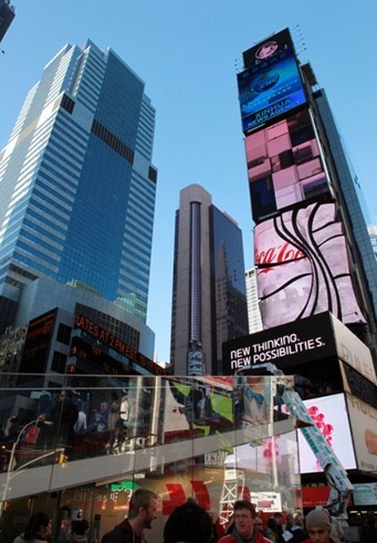 據(jù)說,三星的廣告位置的上面就是中國(guó)新華社租用的位置,通過影像推廣國(guó)家形象,讓美國(guó)和世界人民了解一個(gè)更直觀更立體的中國(guó)國(guó)家新形象。
