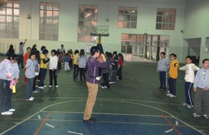 下午,天灰蒙蒙地下起小雨,但是室內(nèi)籃球場上同學(xué)們卻熱情高漲,掌聲,尖叫聲不斷,原來是小學(xué)營在舉行小小運(yùn)動(dòng)會(huì)—投籃比賽。