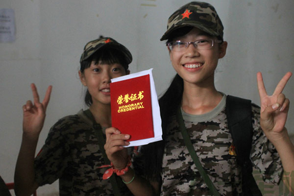 贈(zèng)送物品:軍訓(xùn)長(zhǎng)服1套,體能服1套,軍用帽子1頂,軍用水壺1個(gè),軍旅日記1本,軍旅紀(jì)念品1個(gè),結(jié)業(yè)證書1本。
