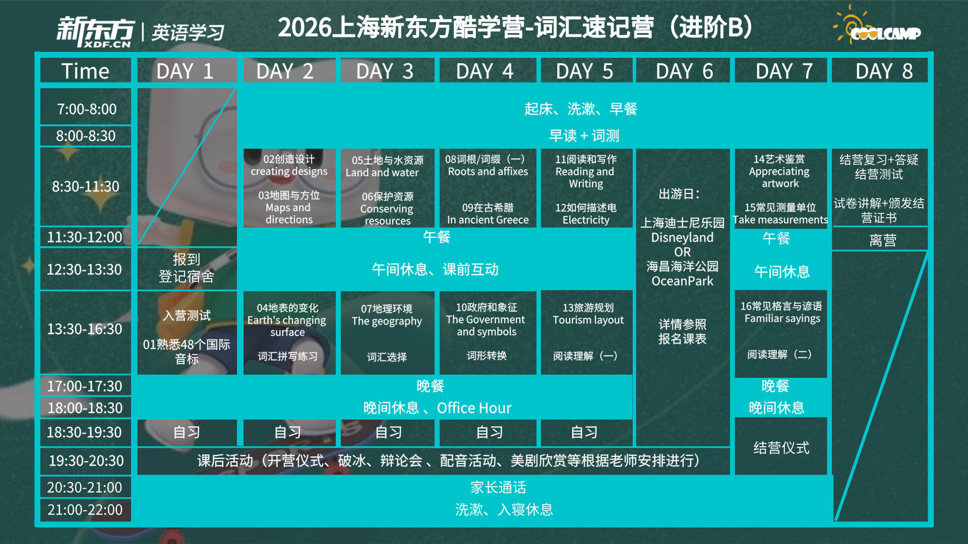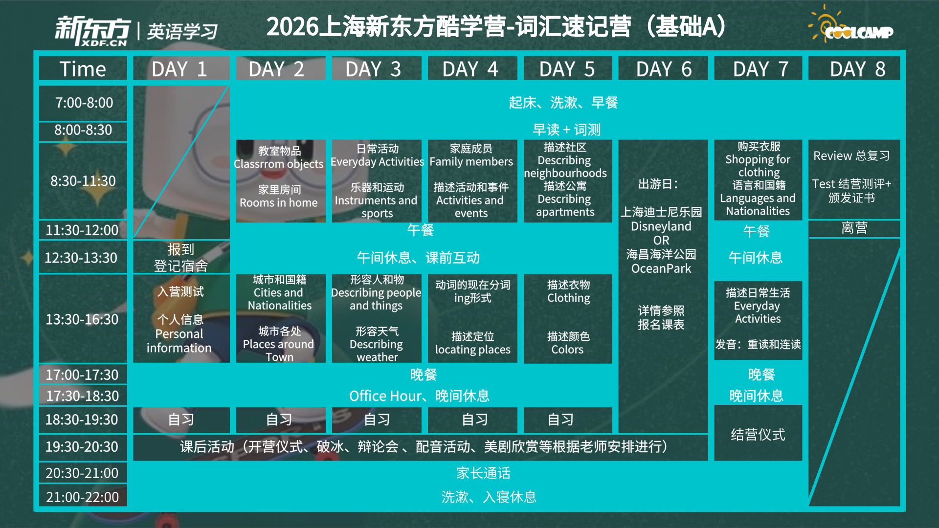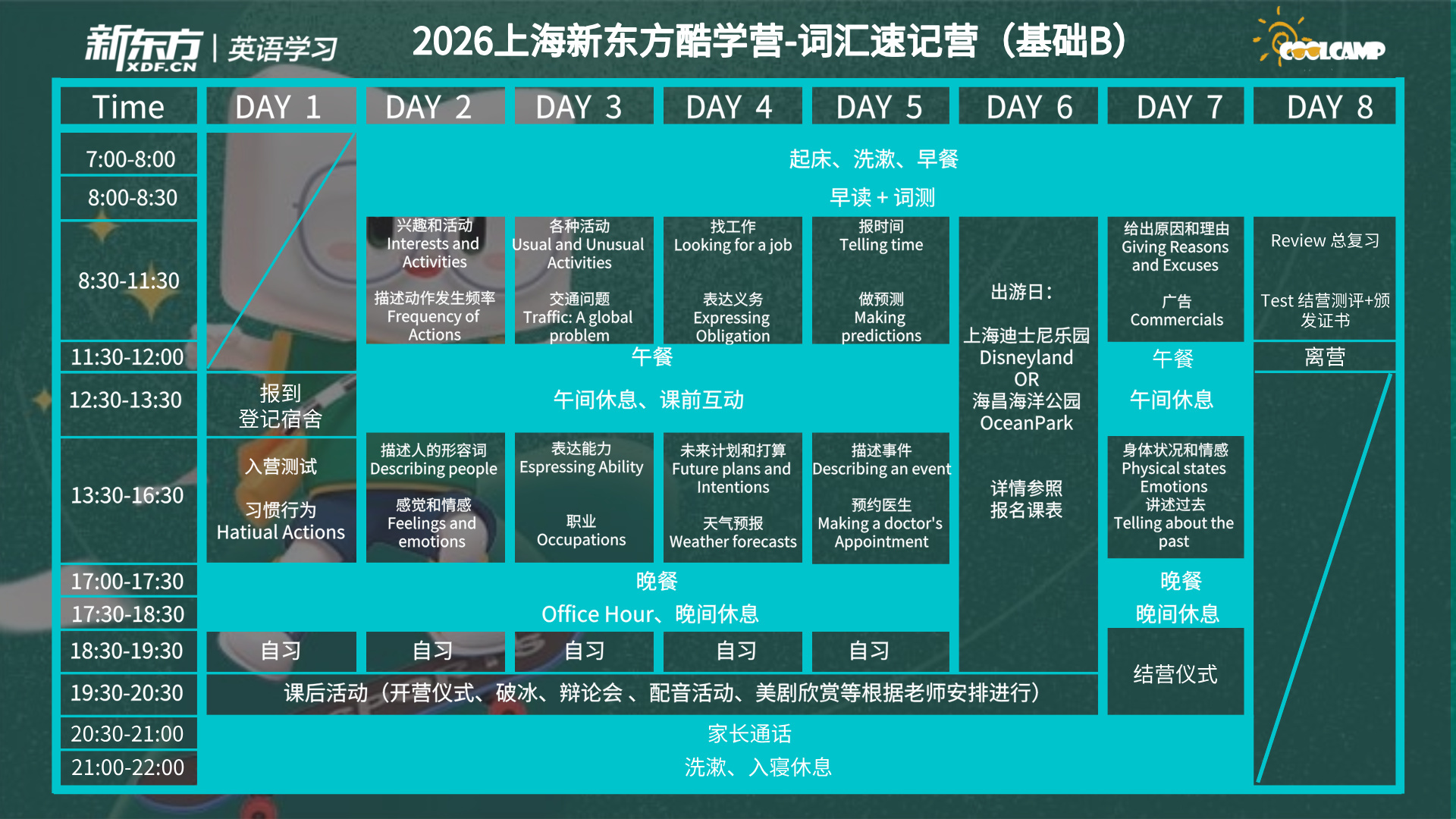 上海新東方酷學(xué)酷玩夏令營全部線路