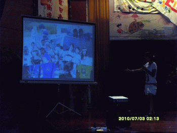 聯(lián)歡會的第一次小高潮是同學們通過照片回憶自己這八天歷程的時候。kl1001的畢同學搜集到了大家這幾天幾乎所有拍的照片——有和老師、助教、班主任在一起的,當然也有同學之間互相嬉戲的生活照。這些才十三、四歲大的孩子們,每天晚上自己洗衣服,白天卻仍舊神采奕奕地去上課。因為他們說,是老師們給了他們鼓勵、動力。他們形容自己可敬的老師、年輕的幾位助教和親愛的班主任們有的清純可愛、有的端莊文雅,他們更為老師的知識所折服,被他們的勵志故事所打動。大家不約而同地說,“我們一定要好好學習,天天向上,不讓新東方的老師們失望!”言語雖顯得有些稚嫩,但從他們堅定的眼神中,我們找得到相信他們的理由。