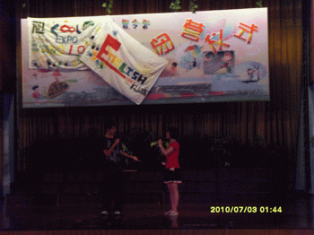 2010年7月13日星期二在上海尚德實(shí)驗(yàn)學(xué)校的大禮堂里,燈光照得通明,舞臺(tái)布置得活潑絢麗。今天,上海新東方學(xué)校酷學(xué)酷玩夏令營(yíng)kl1001和1006的同學(xué)們?cè)谶@里做最后的告別。