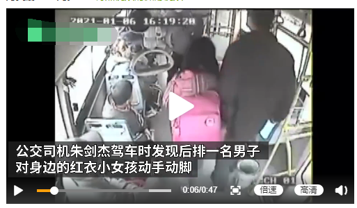 1月10日,據(jù)澎湃新聞報(bào)道,江蘇常州的一輛公交車上暗藏著一個(gè)“惡魔”,在司機(jī)師傅發(fā)現(xiàn)了他的惡行之后,制止了他對(duì)一個(gè)小女孩的猥褻,如果不是這位見(jiàn)義勇為的司機(jī),可能又有一個(gè)可憐的被侵害兒童產(chǎn)生心理陰影,將惡徒罵走后,司機(jī)師傅安慰著小女孩:“遇到這種事不要害怕,要勇敢大聲喊出來(lái)。”