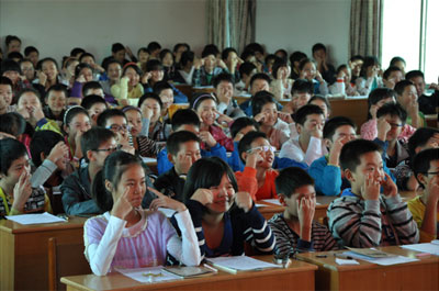 學(xué)生們在體驗(yàn)丁亮老師帶來的武漢新東方著名的“丁丁課堂”