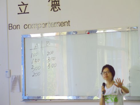 e計劃口語風(fēng)暴營的tina老師很會活躍課堂氣氛,每次開始正式講課前,都為大家精心準(zhǔn)備了隨堂小競賽。營員分成ab組,回顧知識開動腦。